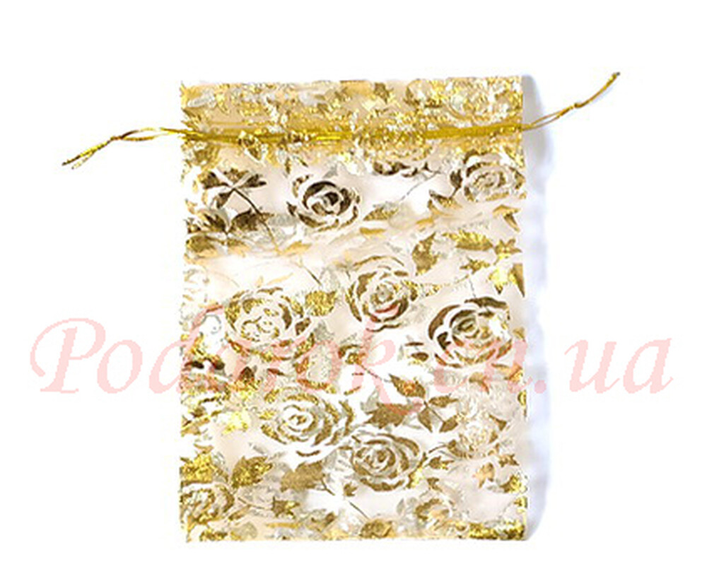 Мішечок з органзи 12,5х8см - колір золото, на зав'язочках.